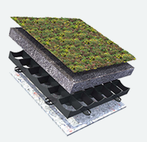 De AA-plaat wordt toegepast als houder voor substraat op hellende daken en bestaat uit een kunststof raster gemaakt van gerecycled LDPE/ HDPE.