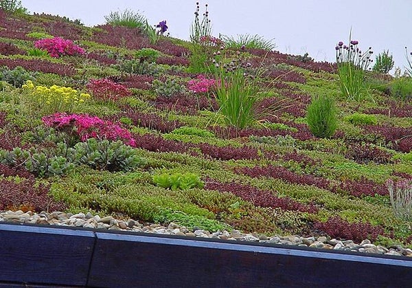 Het vetachtige plantje Sedum is goed in staat om water in het blad op te slaan en kan daarom uitstekend functioneren onder diverse weersomstandigheden. Tijdens de bloeiperiode biedt de diversiteit aan Sedum soorten voedsel voor bestuivers, zoals bijen en vlinders.